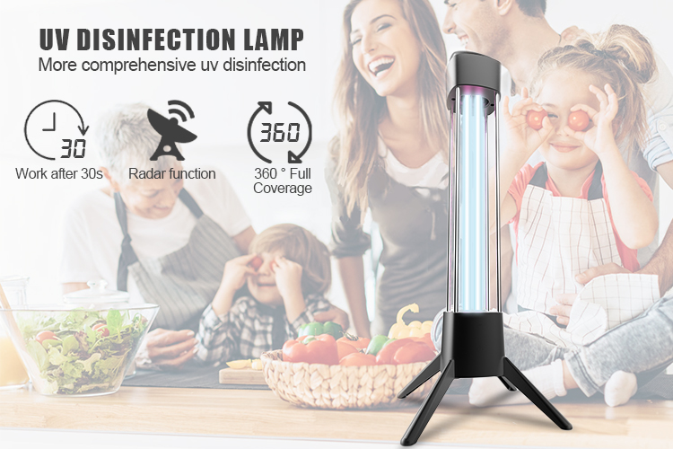 Turn on the UV lamp, the UV lamp has 30 seconds delay to start. If the inductive radar detects any organism within 5m, turn off the ultraviolet lamp immediately. No organisms found in 10 seconds, UV lamp works again.